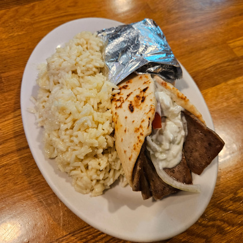 For the main course, the chicken souvlaki is a must-try. Served with fluffy, warm Greek bread and a side of tangy, lemony rice, this dish is a harmonious blend of flavors. The chicken, zucchini, and mushrooms are juicy, well-seasoned, and cooked to perfection. It's a combination that's perfectly balanced, and you'll likely have leftovers to enjoy later.